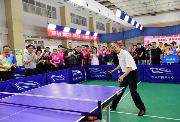 胡柏剡宣布比赛开赛,同时为羽毛球比赛开球。费君清为乒乓球比赛开球。
