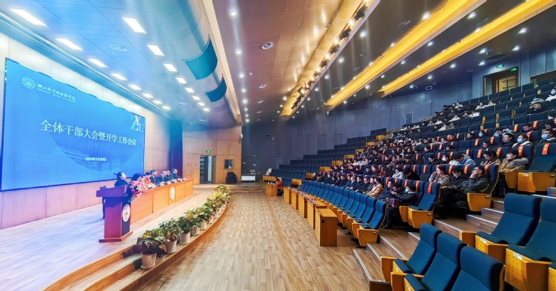 2月23日,学校在镜湖校区图书馆报告厅召开全体干部大会暨开学工作会议,对本科教育教学审核评估工作进行再动员,对学校2024年重点工作进行部署。学校校长修刚、特聘教授费君清、常务副校长魏小琳、副校长陈文涛、副校长葛金玲、党委副书记兼纪委书记高志栋、党委副书记高琴波出席会议,副科级以上干部参加会议。会议由费君清主持。